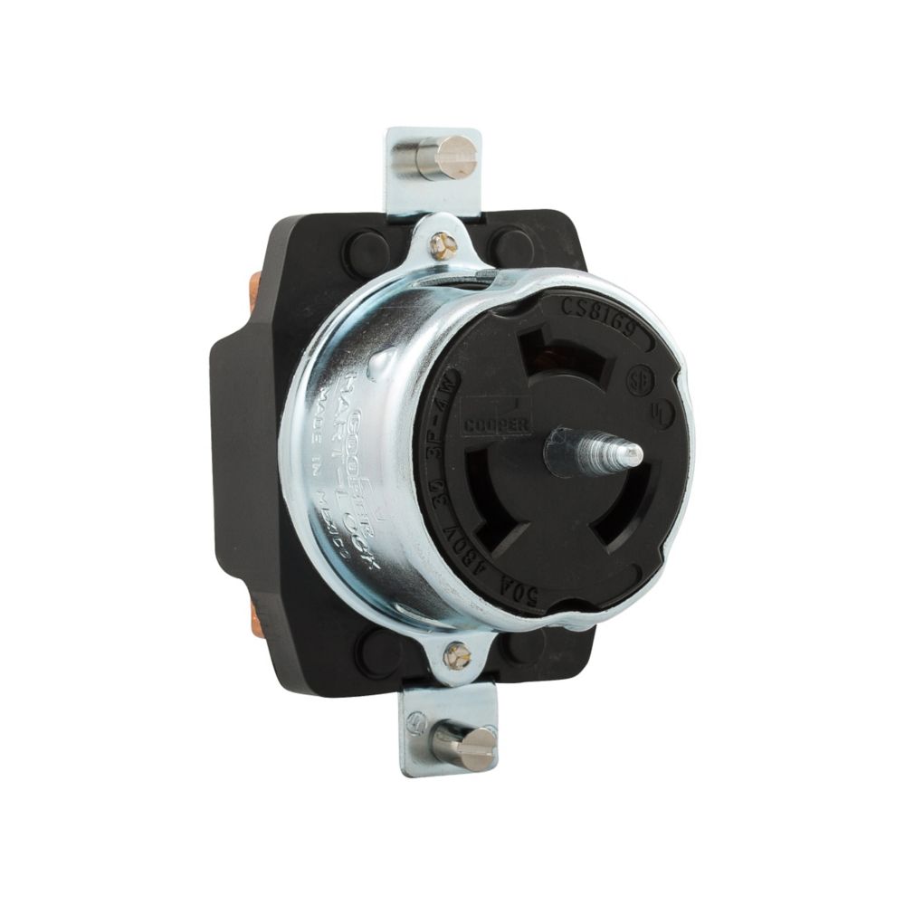 Eaton Locking Receptacle, #10-6 AWG, 50A, Industrial, 480V, Black, Single,Three-pole