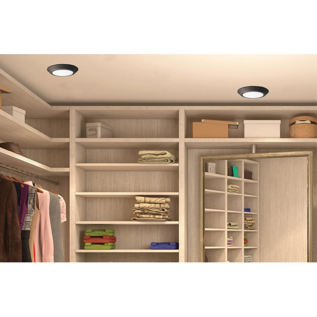 Satco's 21.5 watt, 10 inch LED disk light is a sleek lighting solution for both the home and office. Illuminate kitchens, bathrooms, hallways, and offices with this contemporary, stylish flush mount fixture. Dimmable, with a mahogany bronze finish, this LED disk light delivers 50,000 hours of warm white light.