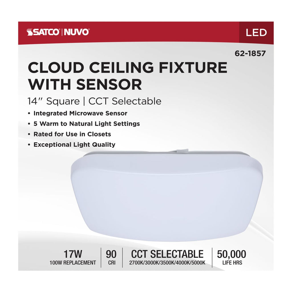14 Inch LED Cloud Fixture with Sensor; 17 Watts; CCT; Square Shape; 120V