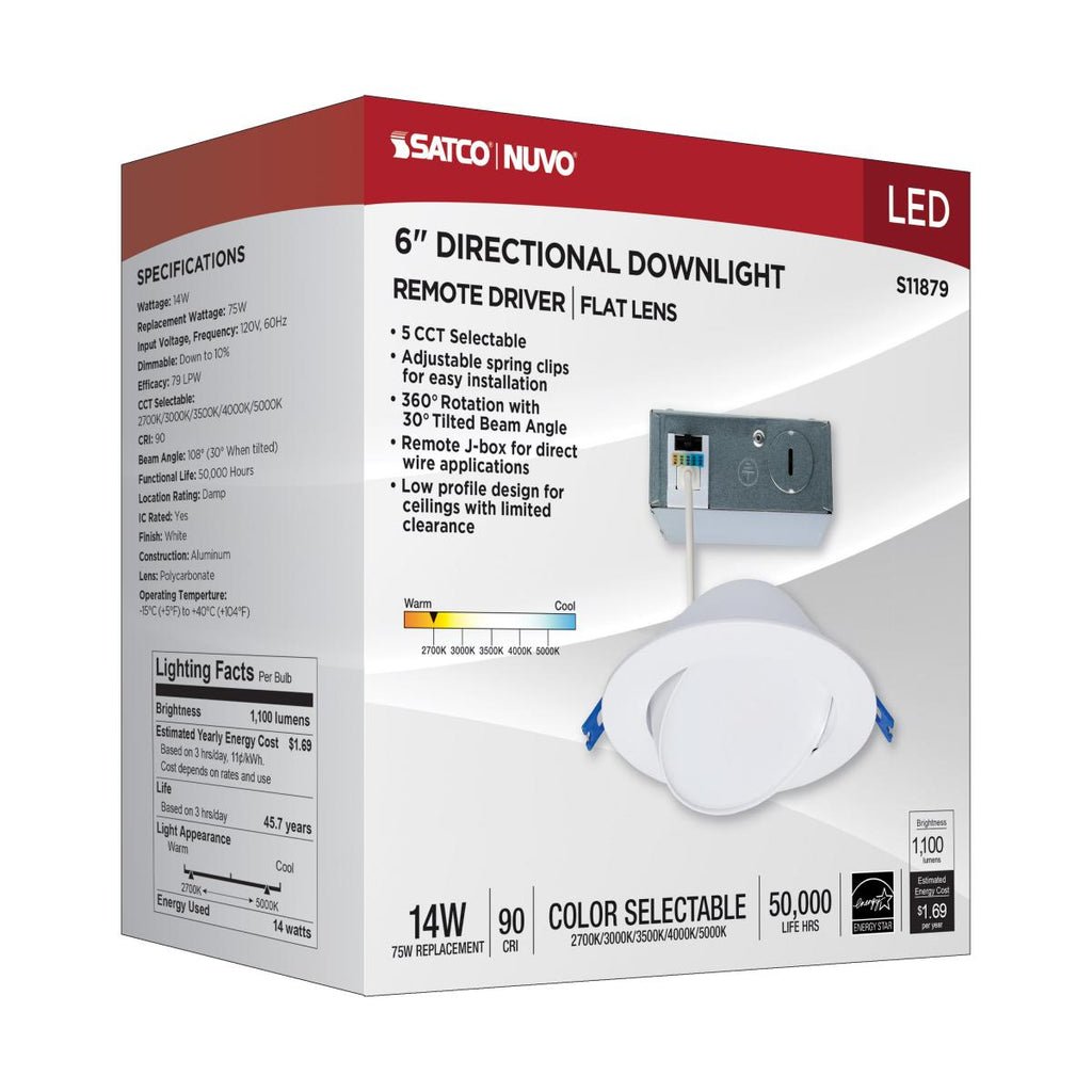 14 Watt; 6"; Directional Low-Profile Downlight; CCT Selectable; 120 Volt; White Finish