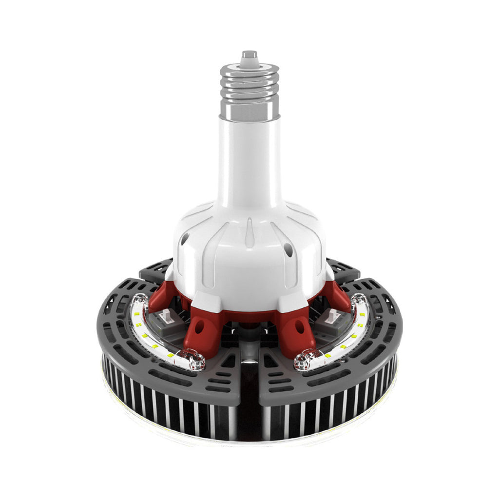 HID Replacement LED High Bay Retrofit Lamp with EX39 Mogul Base, from Keystone. This flexible and energy-efficient High Bay Bulb is designed to meet every preference, coming with switches to change the Wattage and Color. Users can set to 80W, 95W or 115W and set the CCT to 3000K, 4000K or 5000K. This variety enables the light to be ideal for Commercial or Residential uses, including Warehouses, Supermarkets, Garages, Hospitals, Schools, Homes & more! Optional accessories like Motion Sensors and Remote Control are available to order, installing easily into the Keystone SmartPort on the fixture. Bulb is suitable for use in Enclosed Fixtures (minimum compartment dimensions of 14.17" x 14.17" x 13.78"). The druable KT-LED115PSHID-V-EX39-8CSB-D is UL Listed & DLC Listed and backed by a 5 Year Warranty.